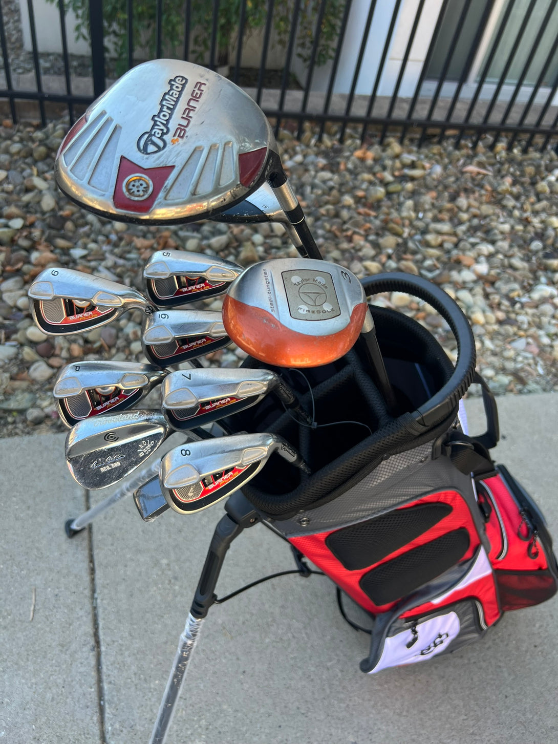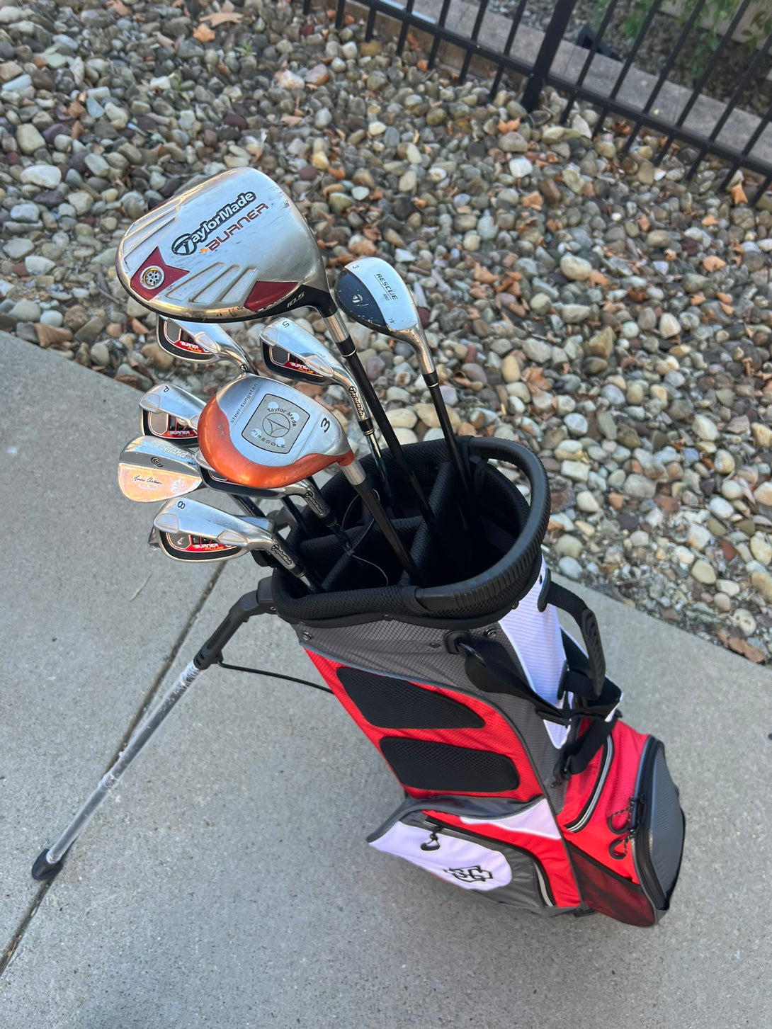 Selling complete set of Men's TaylorMade golf clubs. Includes everything you need to play! Forgiving clubs for a player of any skill level. +1/2" Long clubs for a taller player (6'-1"+).