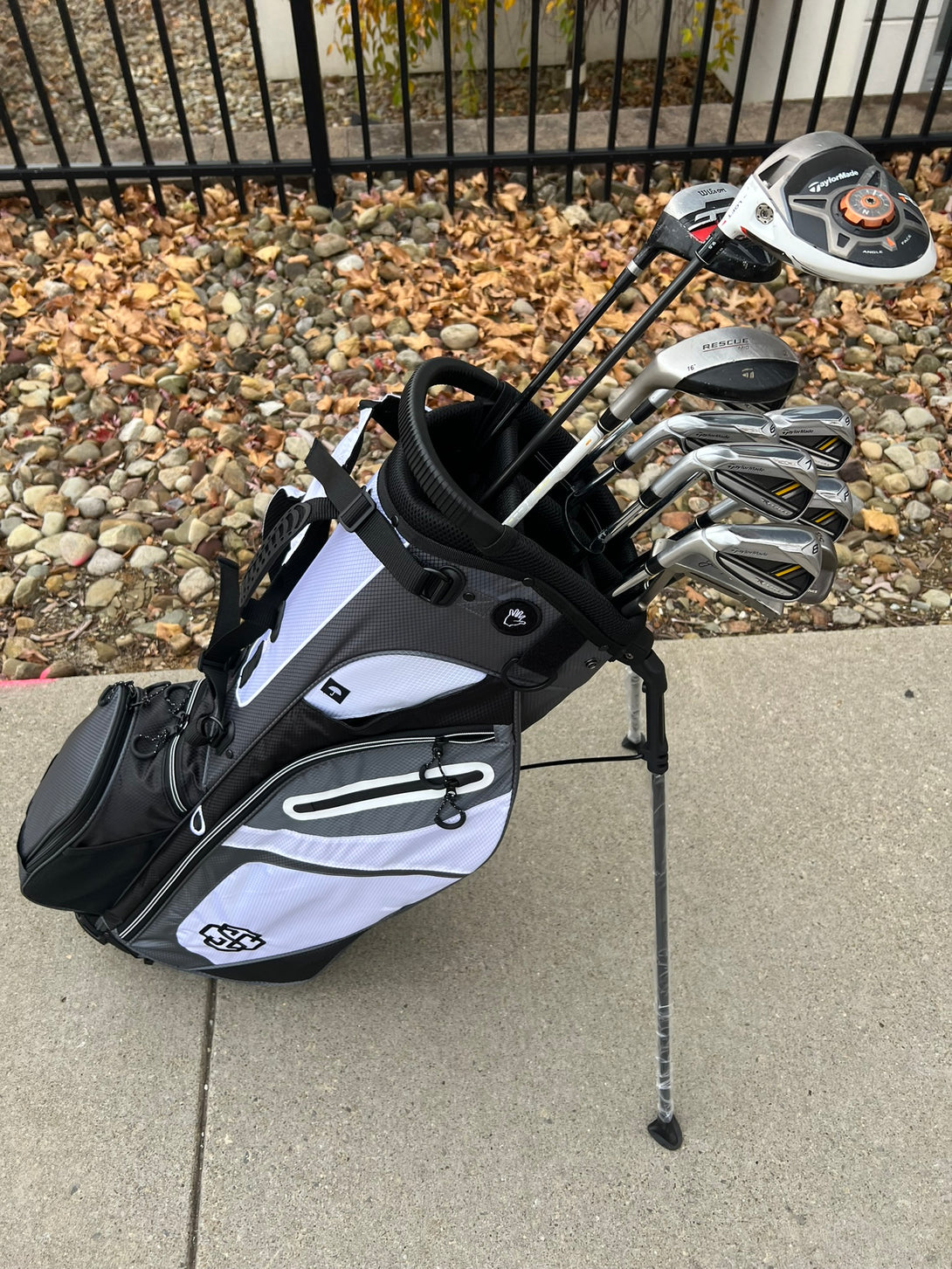 Selling complete set of Men's Lefty TaylorMade golf clubs. Includes everything you need to play! Forgiving clubs for a player of any skill level. +1" long clubs for a tall player (6'-3"+).